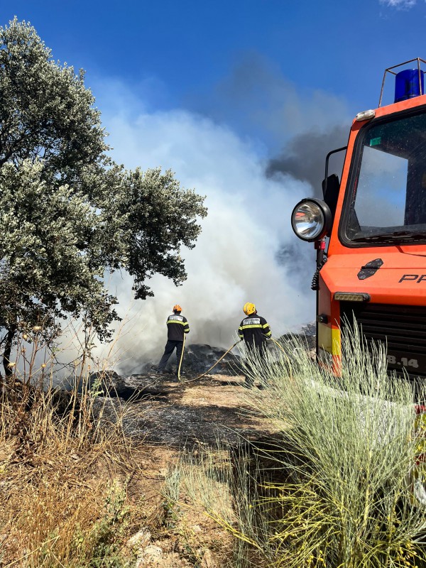 La coordinación y el trabajo conjunto entre los servicios profesionales de extinción y la colaboración activa de los residentes de El Casar de Escalona fueron clave para evitar mayores daños.