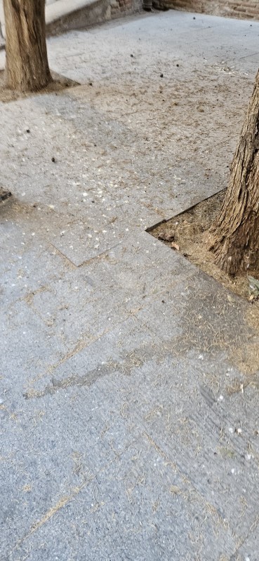 A esto se suman problemas en el acerado, donde se pueden encontrar baldosas rotas o levantadas que pueden provocar caídas, o excrementos de pájaros que adornan la acera bajo los árboles.