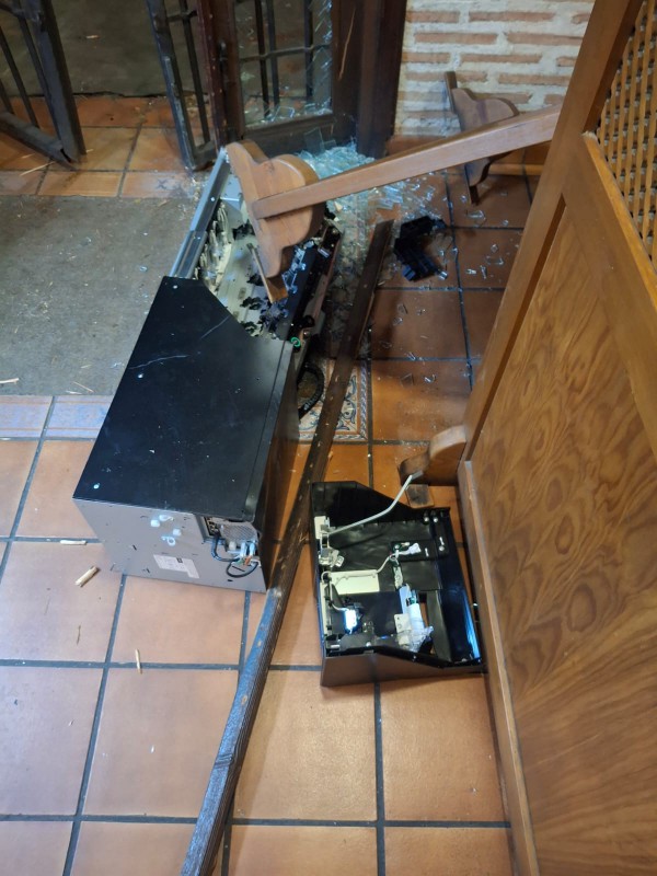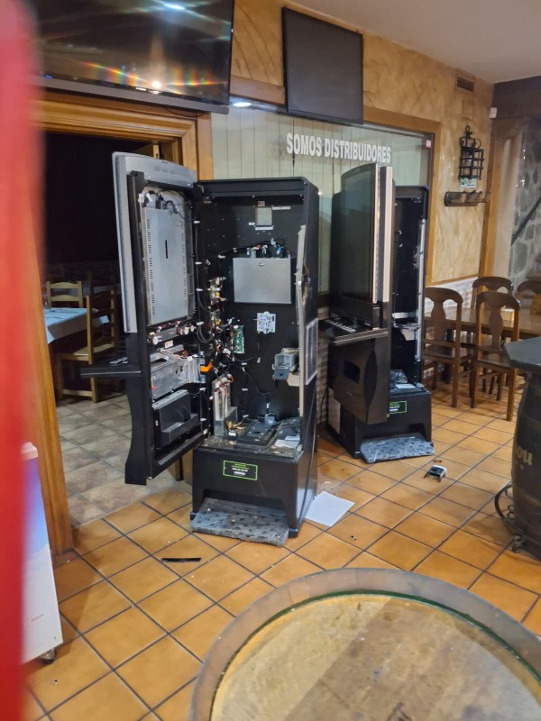 En el interior, las máquinas resultaron gravemente dañadas. En las fotos se observa cómo varias han quedado abiertas y esparcidas por el suelo, con piezas rotas y cables al descubierto.