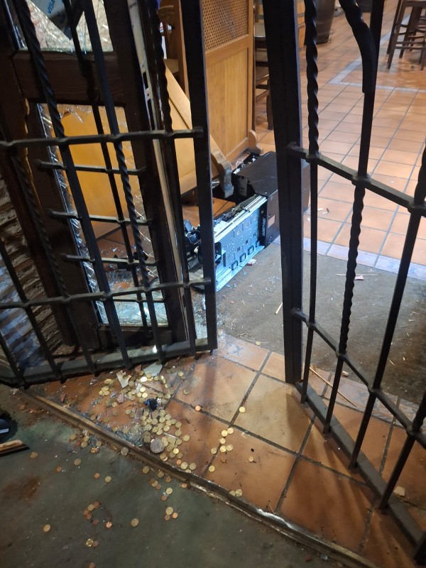 También se aprecian numerosas monedas tiradas tanto en el interior como en la zona de acceso, consecuencia del forzamiento de los dispositivos.