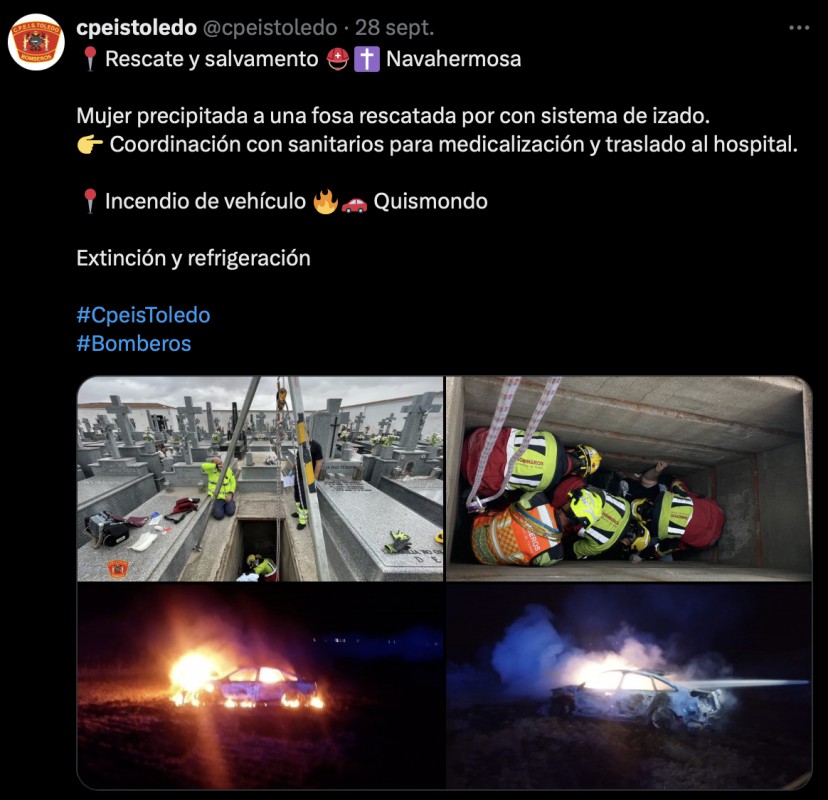 Una mujer de 46 años resultó herida este domingo tras precipitarse al interior de una fosa en el cementerio municipal de Navahermosa (Toledo).