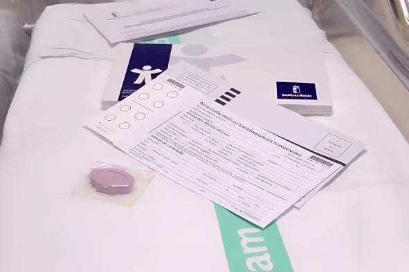 La sangre, gotas que se plasman en un cartón, debe extraerse entre las primeras 48 y 72 horas de vida. Finalmente, las pruebas viajan al laboratorio del Instituto de Ciencias de la Salud de Talavera de la Reina, que es el centro especializado en la región para este programa de cribado.