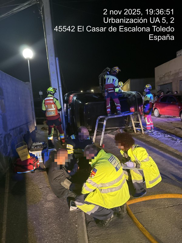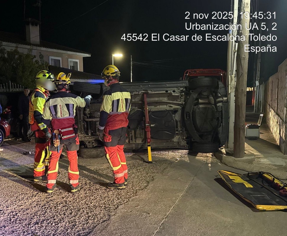 Un hombre resultó herido en la tarde de este domingo tras sufrir un aparatoso accidente de tráfico en el residencial Las Estepas, en la localidad de El Casar de Escalona (Toledo).