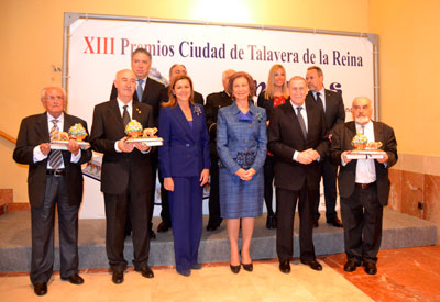 Su Majestad estuvo acompañada en el acto institucional, que abarrotó el teatro, por el secretario de Estado de la Seguridad Social, Tomás Burgos; la presidenta de Castilla-La Mancha, María Dolores de Cospedal; el alcalde, Gonzalo Lago; y el director técnico de la Real Academia de la Historia, el talaverano Jaime Olmedo. Doña Sofía otorgó los turnos de palabra a sus acompañantes en la mesa; Lago expresó su agradecimiento a la Reina por presenciar los premios en los que “reconocemos la valía, el trabajo, la solidaridad y el ímpetu empresarial de los que hacen que Talavera siga siendo en el presente y en el futuro esa gran ciudad del oeste español”. También recordó que el “apellido ilustre” de Talavera se debió a “un acto de respeto y de amor de un rey hacia su esposa”. En este orden, el alcalde dijo que Doña Sofía “es reina de España por derecho y por herencia de Doña María de Portugal desde hace 700 años, lo que incrementa el inmenso valor que ya tienen nuestros Premios 'Ciudad de Talavera'”.