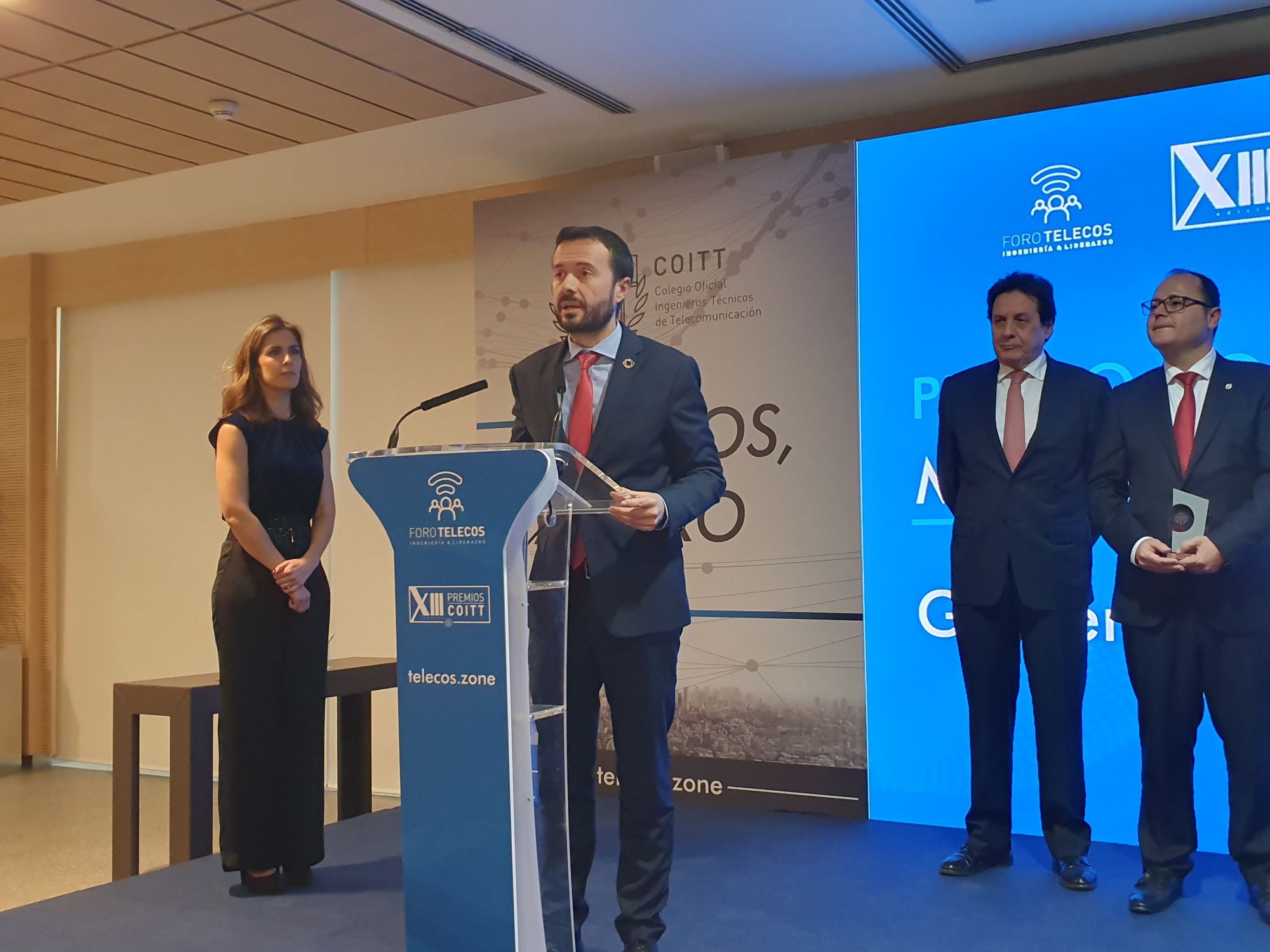 El Colegio Oficial de Ingenieros Técnicos de Telecomunicaciones (COITT) ha reconocido el liderazgo de Castilla-La Mancha en materia de telecomunicaciones, galardonando al Gobierno que preside Emiliano García-Page con el premio ‘Excelencia a la Mejor Iniciativa Pública’ de este año 2019 por el despliegue de las telecomunicaciones ultra rápidas llevado a cabo en la región. En nombre del Ejecutivo castellano-manchego ha recogido el galardón el consejero de Desarrollo Sostenible. Tras agradecer el reconocimiento, José Luis Escudero ha resaltado que la igualdad de oportunidades de todos los ciudadanos en Castilla-La Mancha pasa porque tengan las mismas oportunidades de desarrollo; por lo tanto, ha subrayado el consejero, “el acceso a las tecnologías es un derecho prioritario y fundamental para este fin, y así lo está demostrando con sus políticas en esta materia nuestro Gobierno”. En este mismo sentido, Escudero ha recordado el liderazgo nacional de Castilla-La Mancha en crecimiento de la cobertura 4G (135 por ciento más desde 2015); y de implantación de banda ancha y fibra óptica (336 por ciento). El actual Gobierno lleva invertido en cobertura 4G y 3G en apenas cuatro años, 24 millones de euros. El representante del Gobierno castellano-manchego también ha puesto las miras en el futuro, y ha afirmado que, con el actual despliegue, la fibra óptica llegará en los próximos dos años al 96 por ciento de la población. En este sentido, ha añadido que el compromiso de Emiliano García-Page es que a lo largo de esta legislatura se llegue al 100 por 100”, por lo que, “reconocimientos como el de hoy, son un aliciente y una motivación añadida”. El premio recibido a la ‘Mejor Iniciativa Pública’ en el marco del despliegue de las telecomunicaciones de última generación, es uno de los tres galardones que el COITT entrega cada año con la categoría de ‘Premios Excelencia’. El decano del colegio oficial de Ingenieros Técnicos de Telecomunicaciones, Mario Cortés Carballo, ha transmitido la enhorabuena al gobierno de Castilla-La Mancha, y ha felicitado al consejero, José Luis Escudero, por la apuesta que hace la región a la hora de aplicar la ingeniería de las telecomunicaciones en su territorio y los resultados conseguidos. Junto al Gobierno de Castilla-La Mancha han sido reconocidos en las otras dos categorías de ‘Premios Excelencia’ la LFP (Liga de fútbol profesional) por impulsar las TIC; y Pilar Santamaría, VP Innovation EMEA Dell EMC, Premio Excelencia Trayectoria Profesional. El consejero de Desarrollo Sostenible ha estado acompañado durante la gala por el director general de Cohesión Territorial, Alipio García.