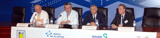 Un año más, el servicio de Cirugía General y del Aparato Digestivo del Hospital General “Nuestra Señora del Prado” de Talavera de la Reina, dependiente del Gobierno Regional, ha organizado las Jornadas de Actualización en esta especialidad bajo el título: Controversias en Cirugía. En esta decimotercera edición participan cerca de cien profesionales sanitarios de toda España y 46 ponentes de prestigio procedentes de hospitales de Madrid, Galicia, Cataluña, Aragón, Murcia, Andalucía y Castilla-La Mancha Prestigiosos cirujanos procedentes de diferentes hospitales españoles, debaten sobre la viabilidad y eficiencia de las distintas técnicas quirúrgicas que se han ido incorporando de forma progresiva en los diferentes ámbitos de la cirugía. El objetivo es conseguir un abordaje eficiente y de calidad de cada actividad quirúrgica esofagogástrica, endocrinológica, mamaria y colorectal. La inauguración ha corrido a cargo del director general de Atención Sanitaria y Calidad del Servicio de Salud de Castilla-La Mancha, Miguel Ángel Soria, que ha estado acompañado del gerente y director médico del Área de Salud, José Luis Morillo y Alfredo Moyano, respectivamente, y del jefe de servicio, Dr. Jesús Timón. La edición de este año la dirigen los doctores Teresa Calderón, Tomas Balsa y Antonio López, del servicio de cirugía del hospital talaverano.