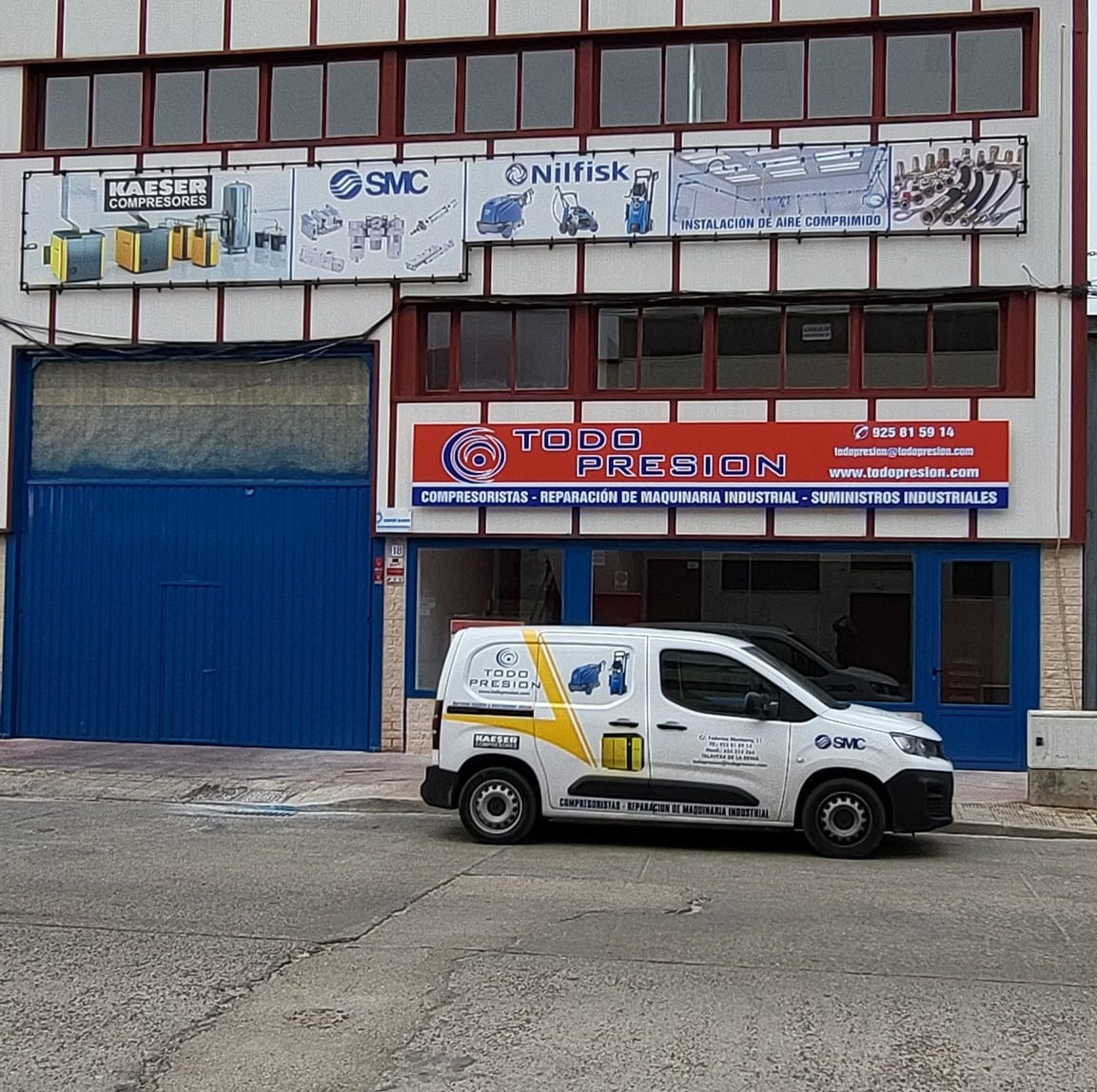 Desde su sede en Victoria Kent, 18, Todo Presión ofrece un servicio integral que abarca desde la distribución de compresores, la reparación y el mantenimiento postventa de todas las marcas del mercado, así como instalaciones certificadas. “Somos empresa instaladora, mantenedora y reparadora de aparatos a presión homologada por Industria”, destaca Jara, “y además podemos realizar retimbrados en depósitos y las pruebas periódicas que marca la normativa”.