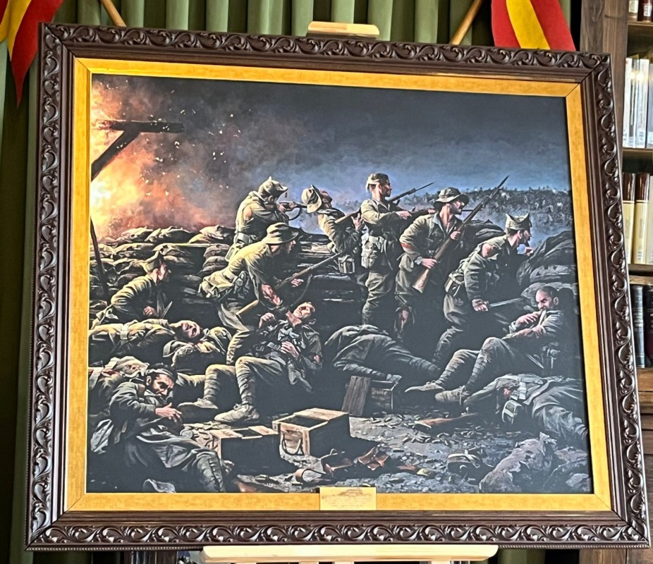 El presidente de la Asociación Santiago, don Fernando Cuevas Íñigo, hizo entrega del denominado “Cuadro del Centenario” al coronel director de la Academia de Caballería, don Francisco Javier López Villar, quien lo recibió en nombre de la institución.