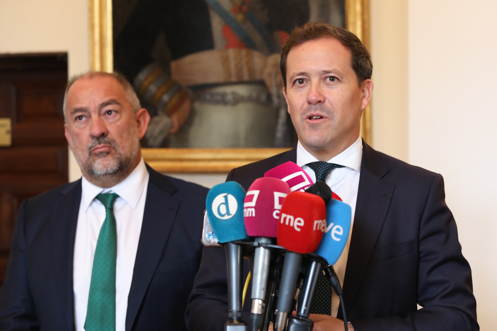 El alcalde de Toledo y presidente de la comisión de Cultura del Grupo de Ciudades Patrimonio de la Humanidad, Carlos Velázquez ha presidido hoy la reunión del Grupo con la Conferencia de Rectores y Rectoras de las Universidades Españolas (CRUE) que reúne a las universidades con campus en ciudades declaradas Patrimonio de la Humanidad, que se ha celebrado en la Sala Capitular del Ayuntamiento de Toledo.