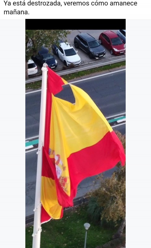 Talavera de la Reina (Toledo) ha amanecido este martes, 2 de diciembre, sin la bandera gigante de España que se había instalado el pasado 25 de octubre. Ayer, una publicación en redes sociales informó de que la enseña se había roto.
