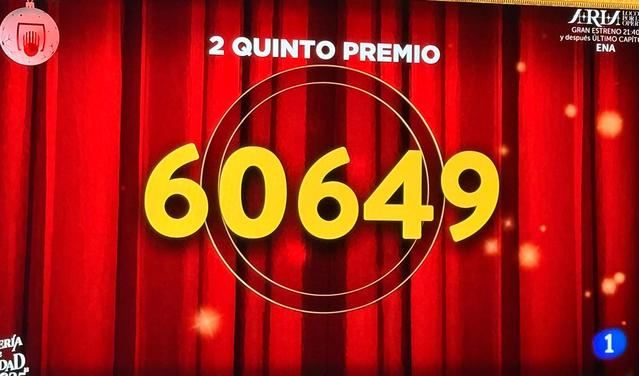El número 60.649 ha sido agraciado con el segundo quinto premio del Sorteo Extraordinario de la Lotería de Navidad 2025, celebrado este lunes 22 de diciembre en el Teatro Real de Madrid.