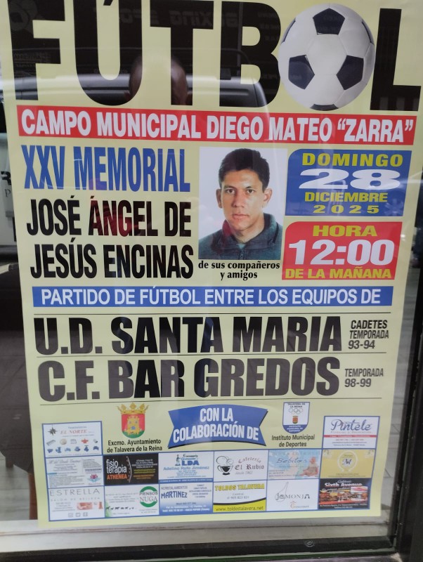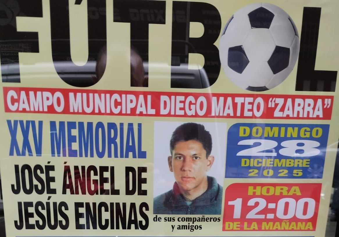El próximo domingo 28 de diciembre de 2025, el Campo Municipal Diego Mateo “Zarra” será el escenario del XXV Memorial José Ángel de Jesús Encinas, una cita ya tradicional en el calendario deportivo local que rinde homenaje a José Ángel de Jesús Encinas.