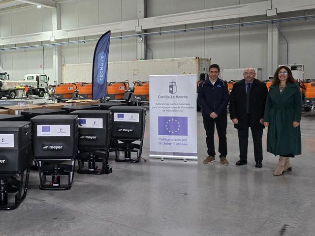 El Gobierno de Castilla-La Mancha, a través de la Consejería de Hacienda, Administraciones Públicas y Transformación Digital, distribuye entre once entidades locales de la Comunidad Autónoma extendedoras de sal destinadas a sus respectivas agrupaciones de Protección Civil.