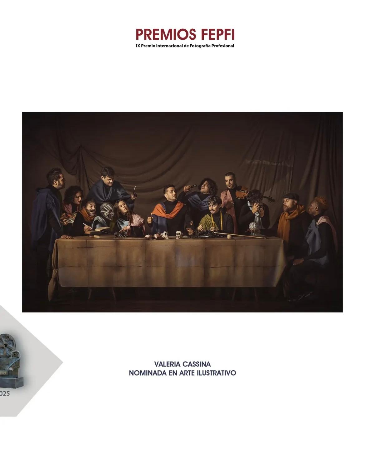 La obra nominada en Arte Ilustrativo lleva por título “La última cena. Artistas a la mesa”, una propuesta conceptual que reinterpreta el célebre pasaje bíblico desde una mirada actual y provocadora. En esta versión, Judas deja de ser una persona para convertirse en la inteligencia artificial, planteando un potente debate sobre el papel de la tecnología en los procesos creativos.