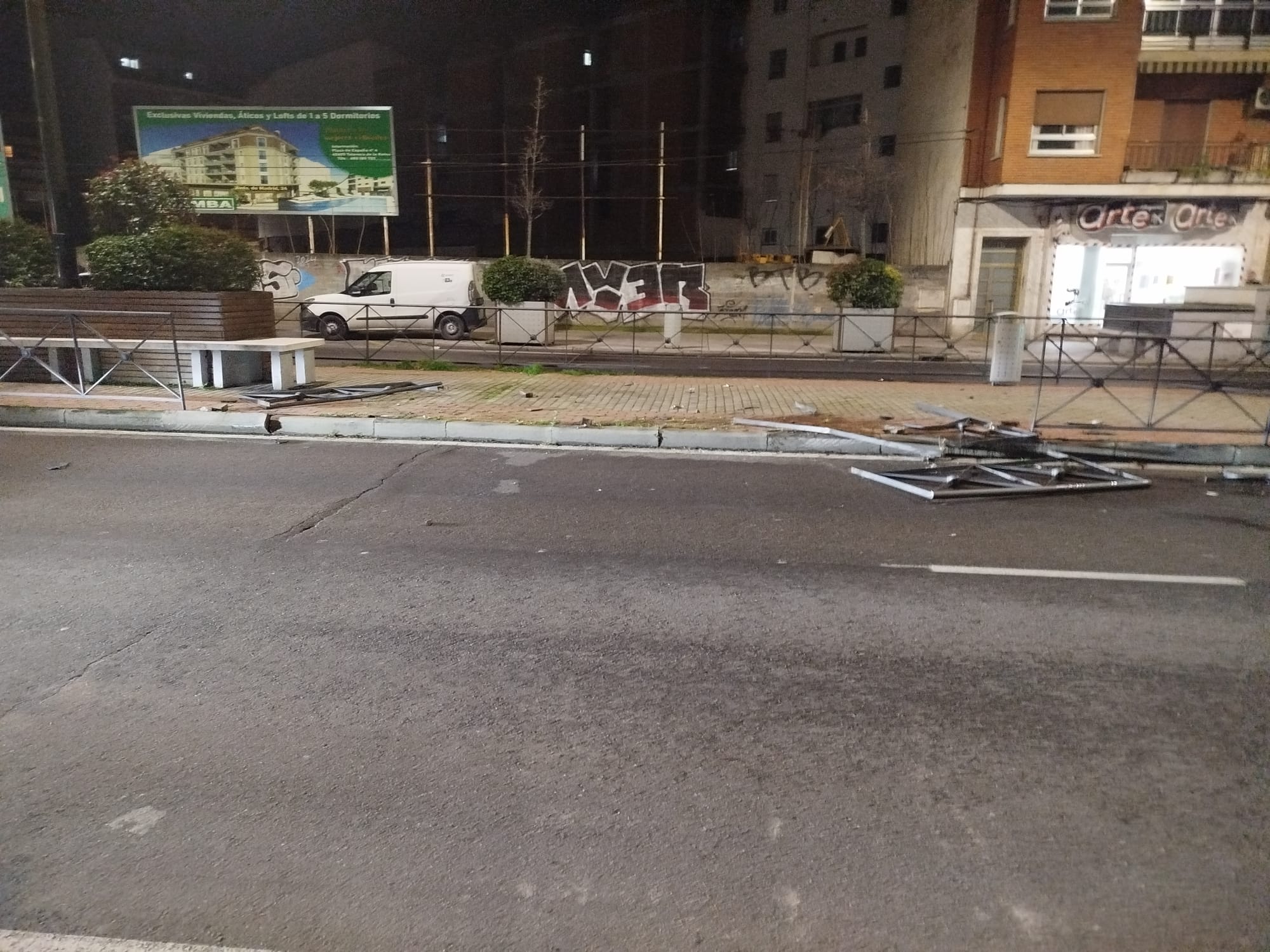 Durante la noche del sábado un vehículo arrancó parte del vallado de la Avenida Pío XII en Talavera de la Reina y su conductor se dio a la fuga. El suceso tuvo lugar junto a la Plaza de España y, según las primeras apreciaciones, el coche circulaba a una velocidad desmesurada en el momento del impacto.