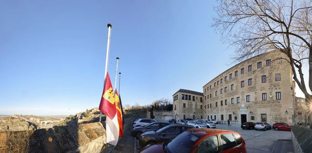 Así, desde las 00.00 horas del martes, 20 de enero, hasta el próximo jueves, 22 de enero a las 00.00 horas, las banderas oficiales de España, Europa y Castilla-La Mancha de la sede del parlamento regional, en el convento de San Gil de Toledo, ondearán a media asta en señal de luto.