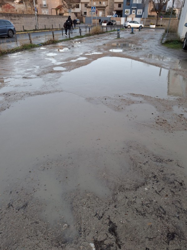 "Tras las últimas lluvias y debido a la falta de mantenimiento por parte del Gobierno de José Julián Gregorio y David Moreno, este espacio presenta numerosos charcos y socavones que dificultan tanto el acceso como el estacionamiento de los vehículos, situación que está generando importantes molestias a quienes hacen uso del mismo", han lamentado.