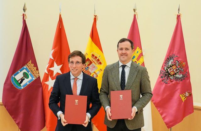 La firma tuvo lugar en el Palacio de Cibeles, donde también estuvieron presentes el concejal de Movilidad del Ayuntamiento de Toledo, Iñaki Jiménez, y el delegado de Urbanismo, Medio Ambiente y Movilidad del Ayuntamiento de Madrid, Borja Carabante.