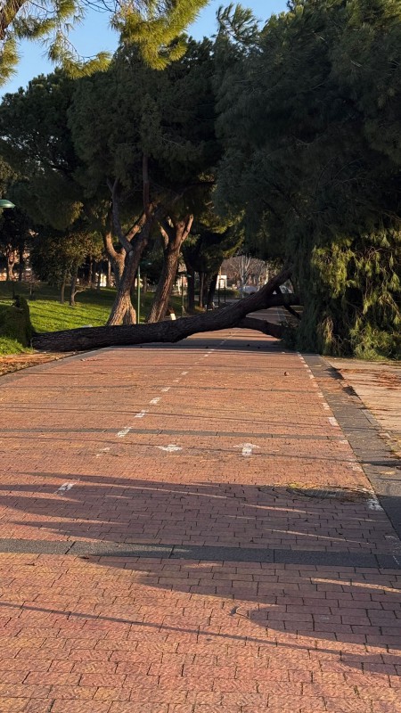 El suceso ha tenido lugar a primera hora de la mañana y, por suerte, no se han registrado daños personales. Por el momento solo se ha caído un ejemplar, aunque no sería de extrañar que debido a las condiciones meteorológicas se desplomara alguno más.