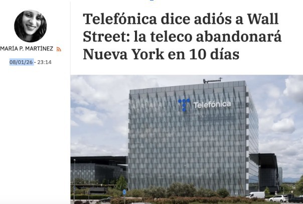 "El adiós a Wall Street resuena con ecos del pasado. Telefónica ya ha vivido otras retiradas traumáticas o simbólicas del parqué: Terra, TPI o Telefónica Móviles son nombres que todavía despiertan emociones encontradas en la memoria bursátil española. Aquellas salidas estuvieron marcadas por la euforia y el colapso de la burbuja puntocom; esta, en cambio, llega envuelta en madurez y pragmatismo”. María Martínez.