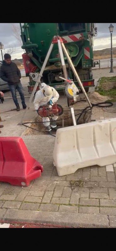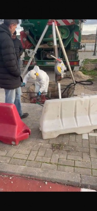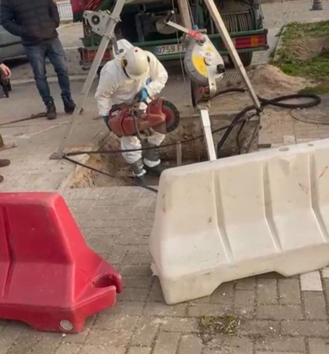 Los testimonios hablan de al menos tres personas con trajes de protección dentro del colector en una primera fase de la tarde y hasta seis posteriormente, utilizando herramientas como radiales para cortar elementos en el interior. “Está claro que ahí hay algo gordo; si no, no se tiran más de seis horas dentro de un colector”, señala uno de los residentes que presenció los trabajos.