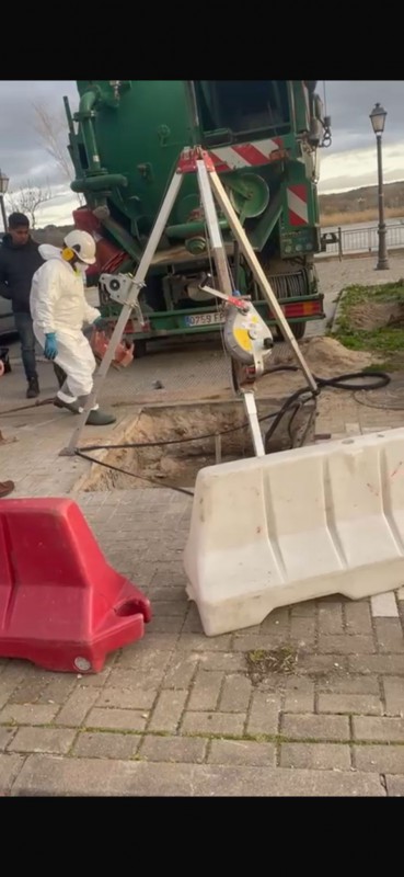 Este martes, 17 de febrero, aún continúan los trabajos en los colectores. Además, una retroexcavadora, una grúa y una linfa trabajan en la zona, lo que ha aumentado aún más las sospechas de los residentes, "si no hay atasco, ¿por qué están tirando con la grúa para sacar algo?".