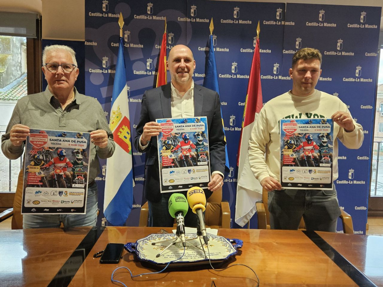 El delegado de la Junta en Talavera de la Reina, David Gómez, ha presentado la prueba conjunta del Campeonato de España de Motos Clásicas y del Campeonato de Castilla‑La Mancha de Motocross, que se celebrará los días 7 y 8 de marzo en el Circuito MX Pusa de Santa Ana de Pusa junto al vicepresidente del Club Deportivo MX Pusa, Jesús del Puerto y el alcalde de la localidad, Serafín Diego.