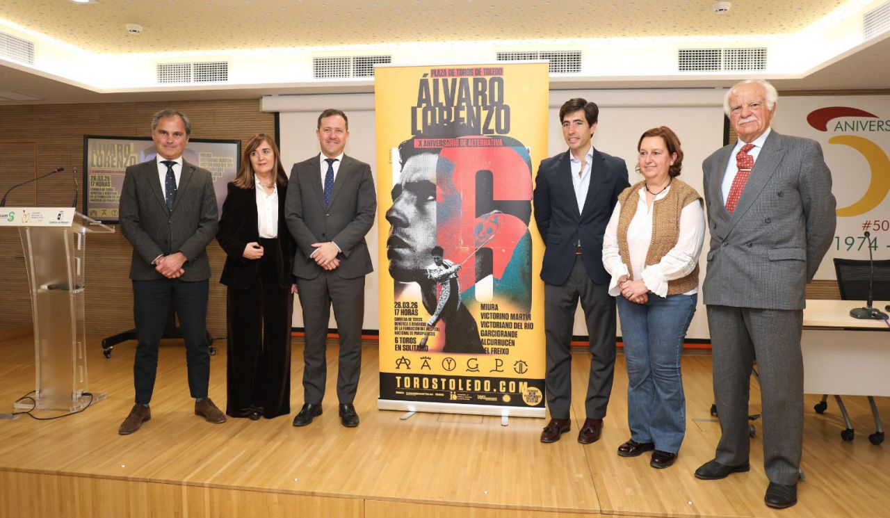 Cerró el acto el alcalde de la ciudad imperial, Carlos Velázquez. “Estamos aquí para tratar entre todos de que la plaza de Toledo esté llena el 28 de marzo y que sea una tarde memorable para nuestro querido torero toledano Álvaro Lorenzo y que sirva de lanzamiento para el gran año que le espera. Hay que tener mucho valor y compromiso para encerrarse con seis toros, en tu ciudad natal y con esas ganaderías. Quería hacer una mención especial también a la empresa Eventos Mare Nostrum, que están consiguiendo que las corridas de toros no sean un evento más, sino que formen parte de la excelencia cultural de la ciudad. Y qué decir del hospital, que lleva 52 años trabajando en una labor extraordinaria que le ha llevado a ser referencia mundial”.