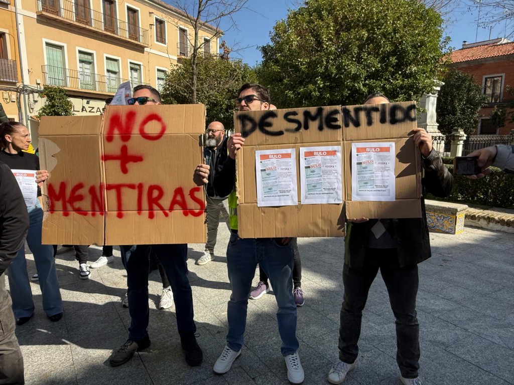 En torno a 50 agentes de la Policía Local de Talavera de la Reina se han manifestado este jueves 26 de febrero, a las 12:00 horas, en la plaza Padre Juan de Mariana, frente al Ayuntamiento, para denunciar lo que califican como un “abandono” por parte del actual equipo de gobierno municipal. Bajo el lema ‘No era un bulo’, los agentes reivindicaron que la información publicada en primicia el pasado 4 de febrero por La Voz del Tajo, relativa a un comunicado del cuerpo policial, era cierta y que mantienen sus reclamaciones ante la situación que atraviesan.
