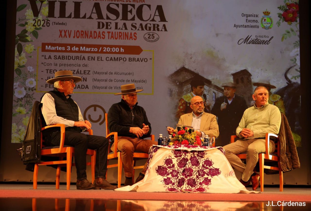La cuarta charla coloquio de las XXV Jornadas Taurinas 2026 en Villaseca de la Sagra reunió en el Auditorio Juan Pascual de Mena a tres mayorales de referencia bajo el título ‘La sabiduría del Campo Bravo’. El encuentro centró el debate en el trabajo diario en las ganaderías y en los retos estructurales que afronta el campo bravo.