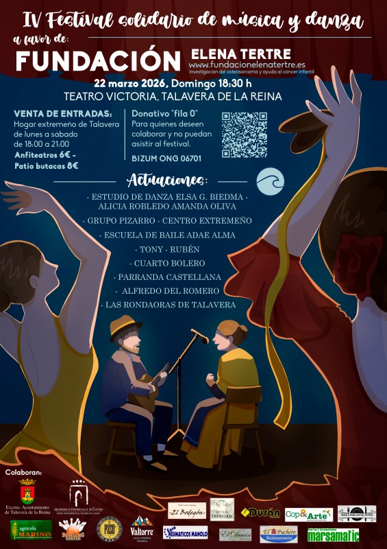 En esta IV edición del Festival Solidario a favor de la Fundación Elena Tertre, van a participar nuevamente dos academias de danza junto a cuatro grupos musicales y otros destacados artistas muy conocidos en la ciudad de Talavera de la Reina y de su comarca.