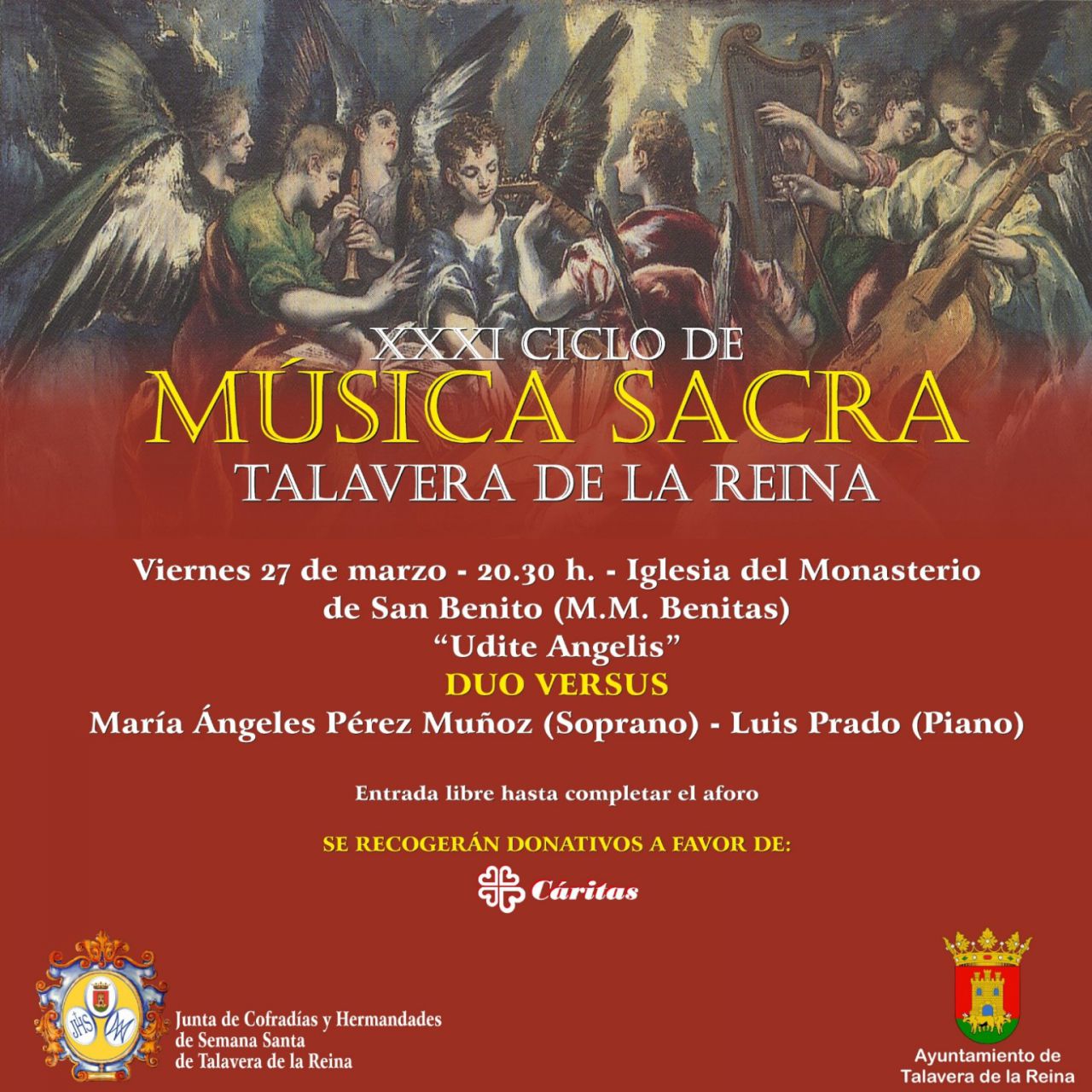La entrada es libre hasta completar el aforo y se recogerán donativos a favor de Cáritas