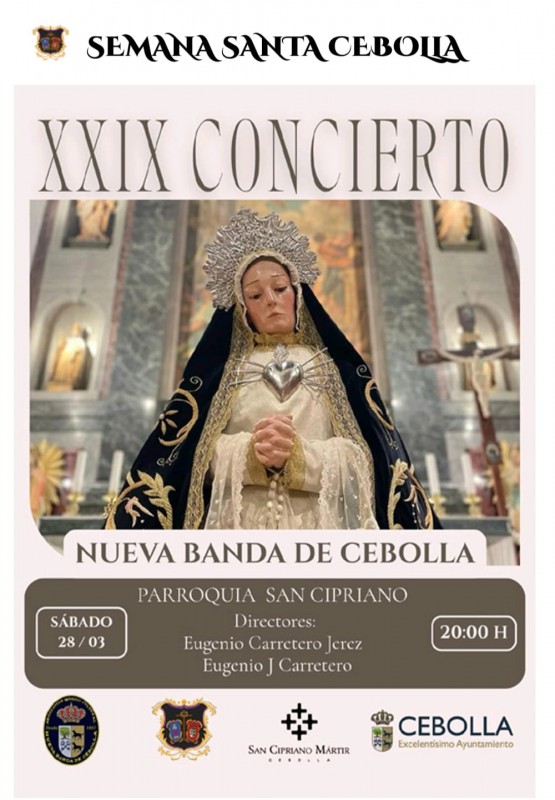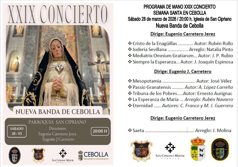 La localidad de Cebolla se prepara para vivir uno de los actos más destacados de su programación de Semana Santa con la celebración del XXIX Concierto de la Nueva Banda, una cita ya consolidada en el calendario cultural y musical del municipio.