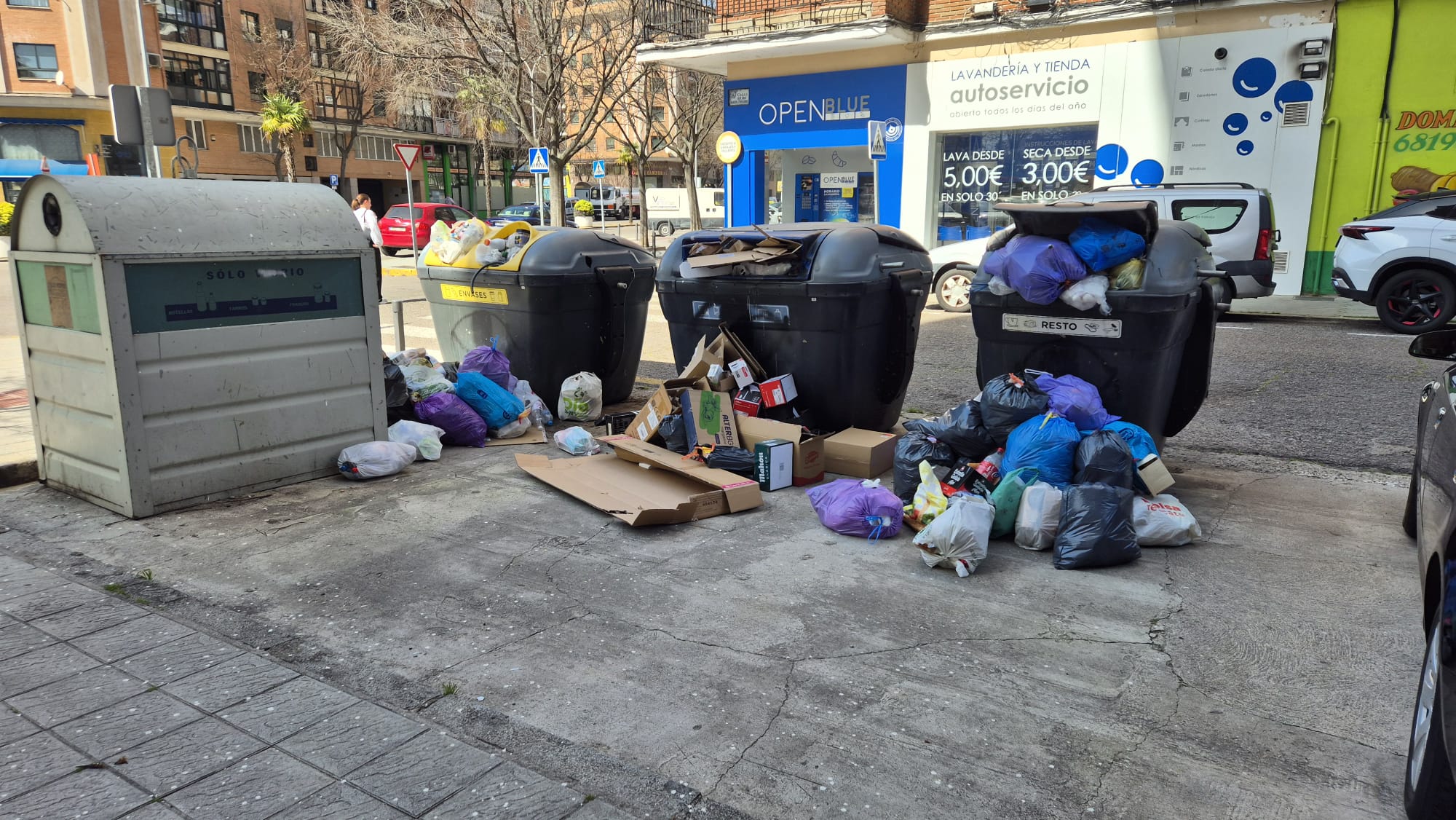 La situación ha llegado a un punto crítico este jueves cuando un contenedor de material reciclable, lleno de residuos, se incendió en la plaza Leonardo da Vinci, cerca del colegio Rafael Morales, obligando a la intervención de los servicios de emergencia.
