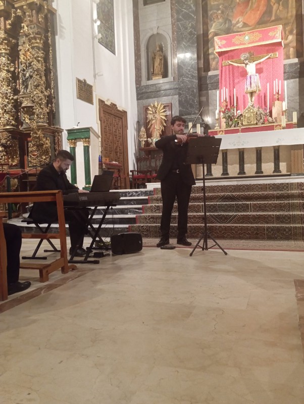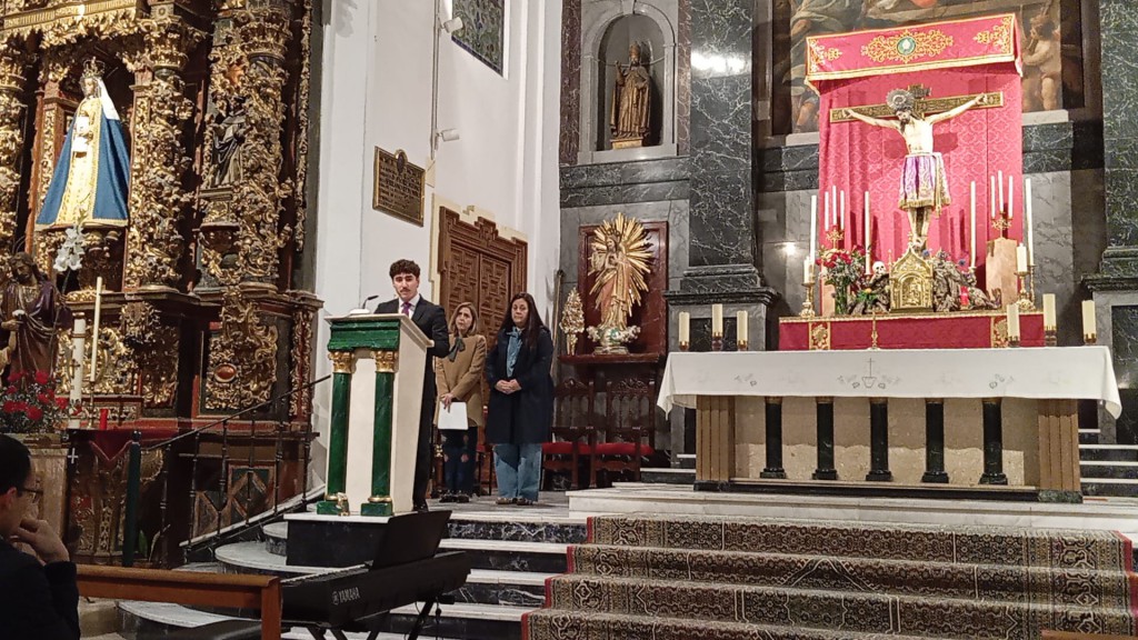 El pregón corrió a cargo de D. José Tofiño Ramírez, quien ofreció un discurso profundamente emotivo centrado en la vivencia de la Semana Santa desde la fe, poniendo en valor las raíces y la identidad de esta celebración en el municipio. El acto contó con el acompañamiento musical de Ángel Molina al piano y Álvaro Sáez al violín, cuyas interpretaciones contribuyeron a realzar la solemnidad del momento.
