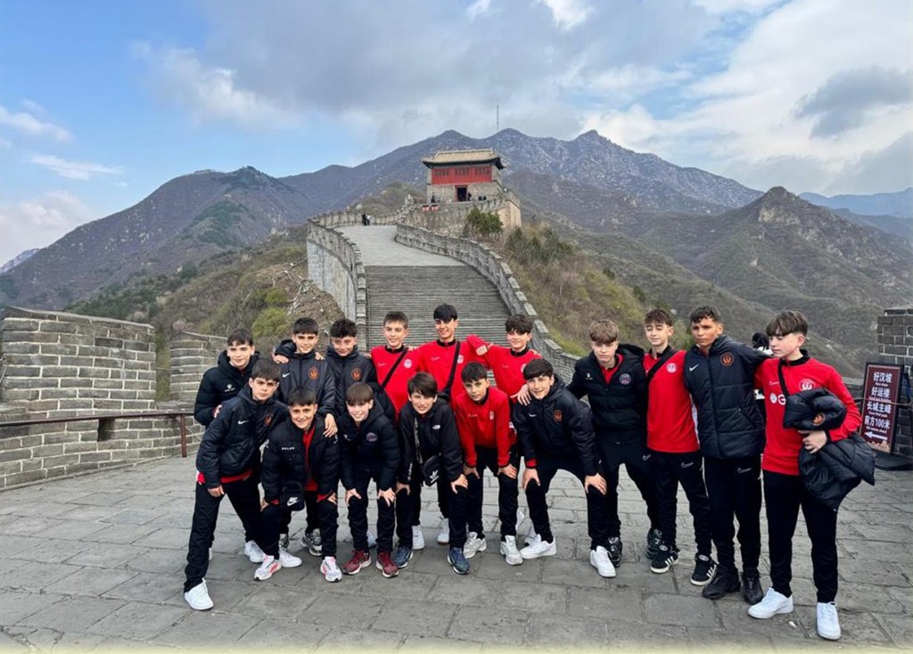Tras un aterrizaje emocionante y el recibimiento de Daniel (Yue) en la terminal, la realidad superó rápidamente al sueño. La primera gran parada fue la Gran Muralla China, un escenario imponente que obligó a los jugadores a enfrentarse a subidas exigentes y que dejó imágenes difíciles de olvidar. Allí, entre escalones milenarios, ocurrió algo mágico: el fútbol empezó a derribar muros. Los jugadores españoles comenzaron a intercambiar risas y bromas con sus homólogos chinos del instituto local, demostrando que el deporte es un idioma universal que no necesita traducción.