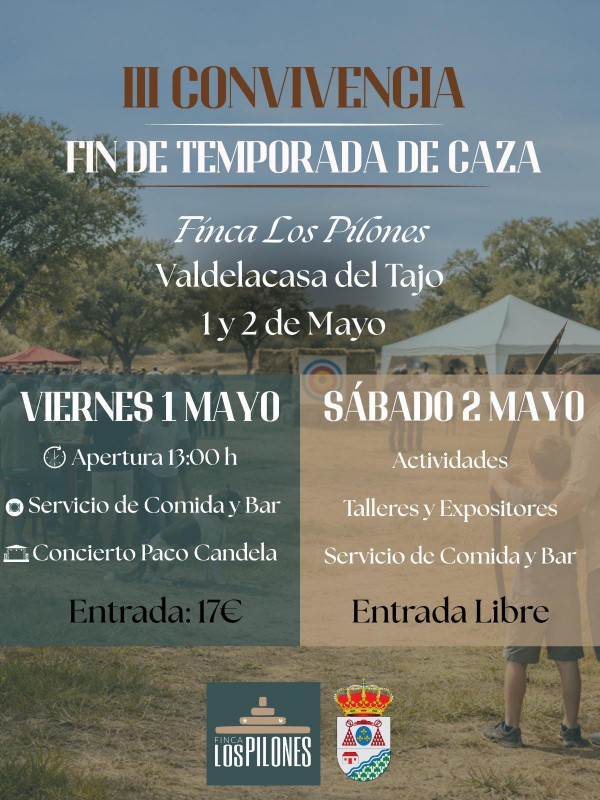 Valdelacasa del Tajo (Cáceres) acogerá los próximos 1 y 2 de mayo la III Convivencia de Fin de Temporada de Caza, un encuentro que se consolida como una de las citas más destacadas del calendario cinegético y rural en Extremadura.