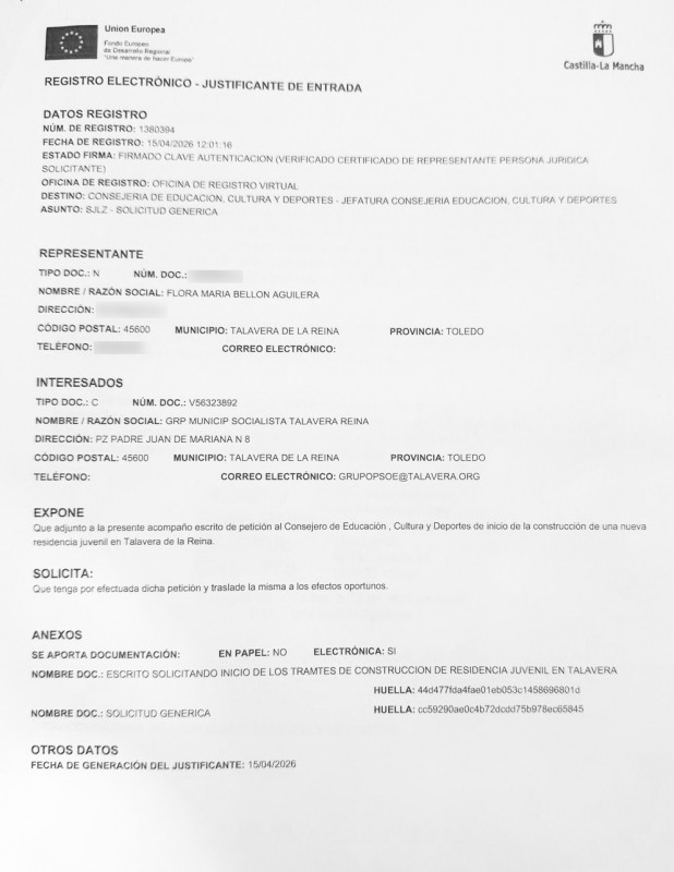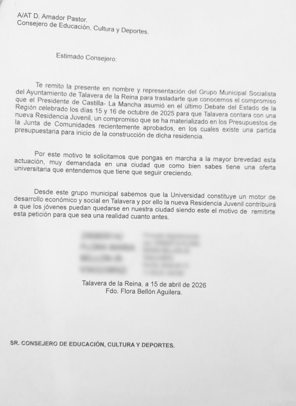 La presidenta del Grupo Municipal Socialista en el Ayuntamiento de Talavera de la Reina (Toledo), Tita García, ha reclamado al Gobierno regional “agilidad” para que la residencia de estudiantes comprometida por el presidente de la Junta de Comunidades de Castilla-La Mancha, Emiliano García-Page, “sea una realidad en Talavera cuanto antes”.