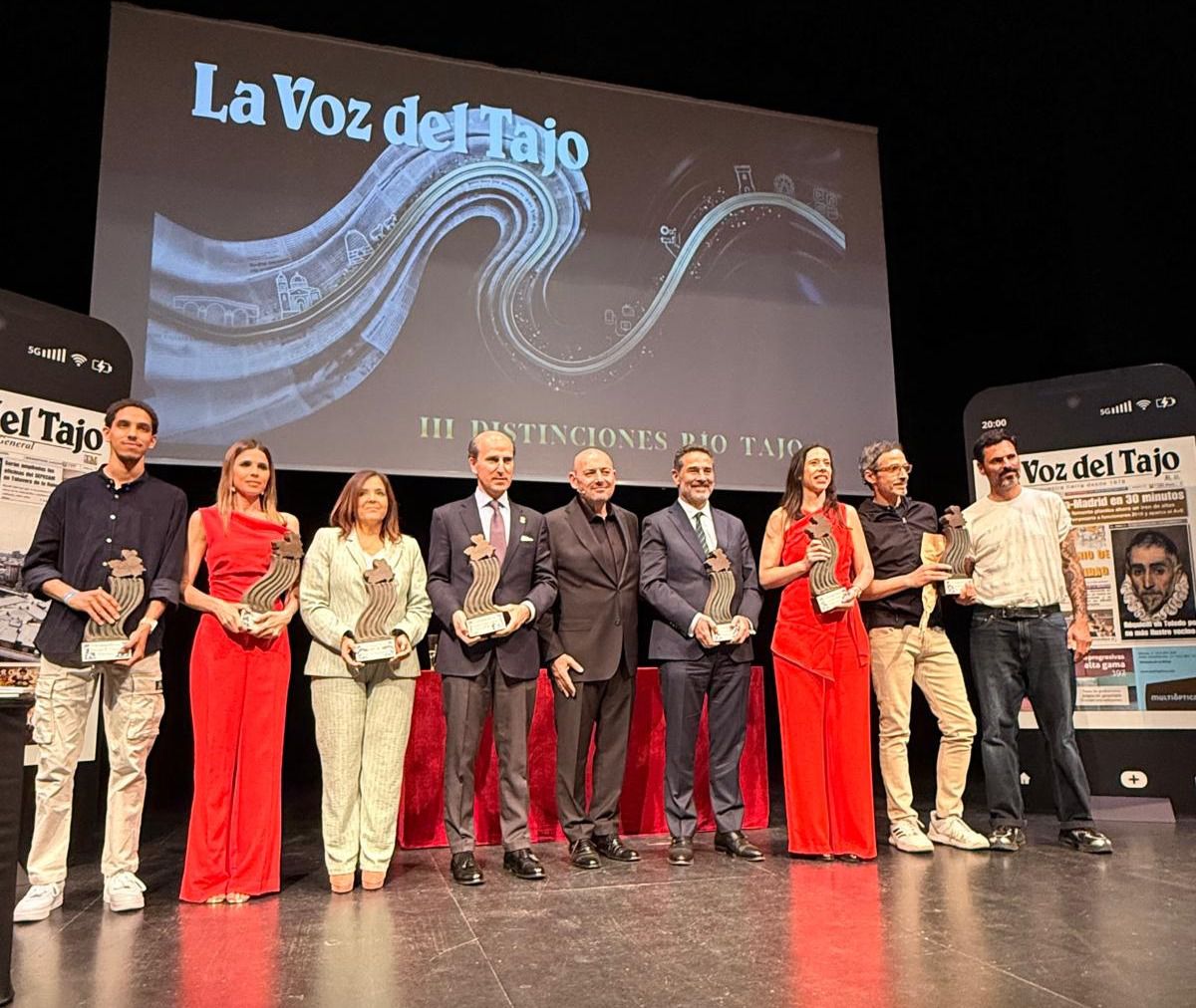 La III edición de las Distinciones Río Tajo, celebrada en la noche de ayer, se saldó con un rotundo éxito en el Teatro Victoria, que registró un lleno absoluto de asistentes que no quisieron perderse una gala ya consolidada como referente en Talavera de la Reina. Organizada por La Voz del Tajo, la cita volvió a poner en valor el talento, el esfuerzo y la excelencia vinculados al río Tajo y a Castilla-La Mancha, destacando además por su carácter innovador e interactivo.