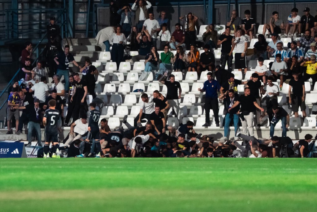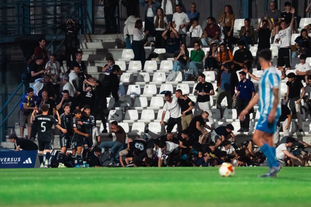 El suceso tuvo lugar tras el tanto que suponía el empate del conjunto madrileño. En ese instante, varios seguidores del Castilla se concentraron en la parte baja del graderío para festejar la acción, lo que provocó que una zona de la estructura se derrumbase de forma repentina.