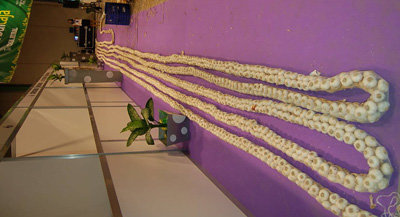 El nuevo récord se ha fijado en los 138,50 metros y para elaborar esta ristra se ha empleado más de 500 kilos de ajos. Han sido necesarias también muchas horas de trabajo. La prueba dio comienzo el pasado viernes, 26 de julio, a las 08:00 horas de la mañana y se ha prolongado durante los días de celebración de la Feria Internacional del Ajo.